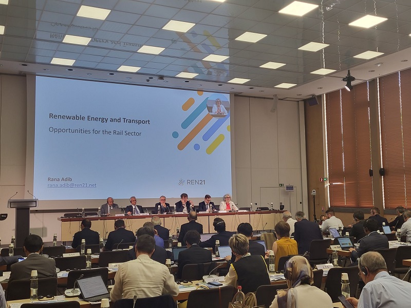 Ms Rana Adib, Executive Director of REN21, gave a keynote speech. REN21 is the only global renewable energy community of actors from science, governments, NGOs and industry. REN21 provides up-to-date and peer-reviewed facts, figures and analysis of global developments in technology, policies and markets. Their goal is to enable decision-makers to make the shift to renewable energy happen – now. The main message heard is as follows: “Regarding the link between rail and renewable energies, there is a real opportunity to accelerate rail’s decarbonisation and build a resilient energy supply, reduce energy costs and manage them better; so it’s important to invest and act today to secure tomorrow’s supplies. There is also a need for greater coordination of strong investment policies and lobbying of governments”.