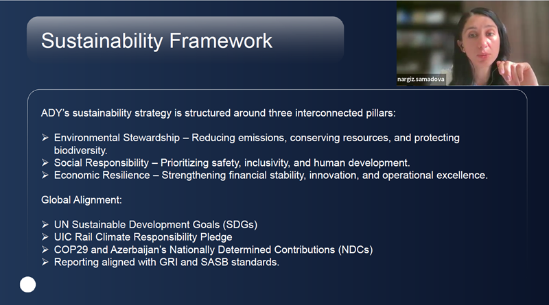 The meeting concluded with a moderated discussion on sustainability in the Asia-Pacific context, featuring Nargiz Samadova, Sustainable Development Manager, Azerbaijan Railways (ADY), and Xin Ling, Deputy Director of Tianyou Railway Institute, Southwest Jiaotong University (SWJTU), represented by Prof. REN Jun.